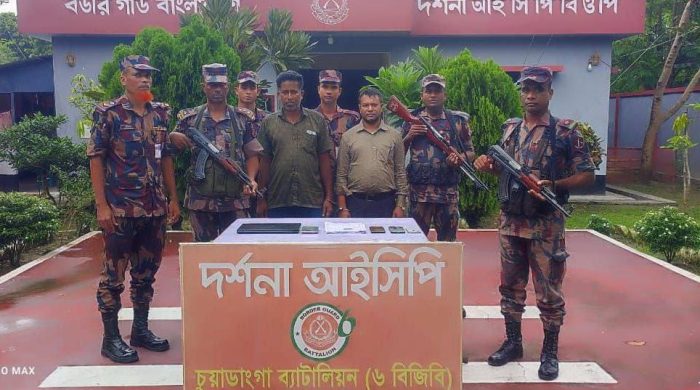 নিজস্ব প্রতিবেদক : চুয়াডাঙ্গার দর্শনা সীমান্ত দিয়ে অবৈধভাবে ভারতে পালানোর চেষ্টা কালে টহল বিজিবির হাতে কুষ্টিয়া ও রাজশাহী আওয়ামী প্রজন্ম লীগের দু’ নেতা আটক হয়েছে। এসময় তাদের কাছ থেকে একটি