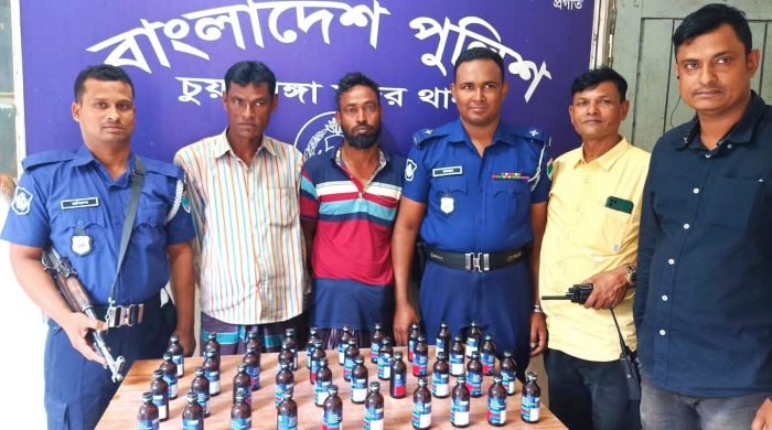 নিজস্ব প্রতিবেদক : চুয়াডাঙ্গা সদর থানা পুলিশ মাদক বিরোধী অভিযান চালিয়ে ৪০ বোতল ফেন্সিডিল ও ইজিবাইক সহ দুই মাদক কারবারিকে আটক করেছে। শনিবার (২৩ মার্চ) বিকাল ৪ টার দিকে চুয়াডাঙ্গা