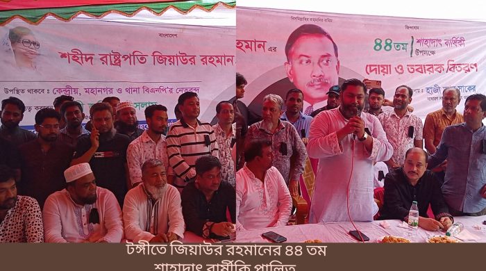 নিজস্ব প্রতিবেদক : গাজীপুরের টঙ্গীতে শহীদ রাষ্ট্রপতি জিয়াউর রহমানের ৪৪তম শাহাদাৎ বার্ষিকী উপলক্ষে আলোচনা সভা, দোয়া ও তবারক বিতরণ অনুষ্ঠান অনুষ্ঠিত হয়েছে। রবিবার (১ জুন) দুপুরে গাসিক ৫৫নম্বার ওয়ার্ড বিএনপি