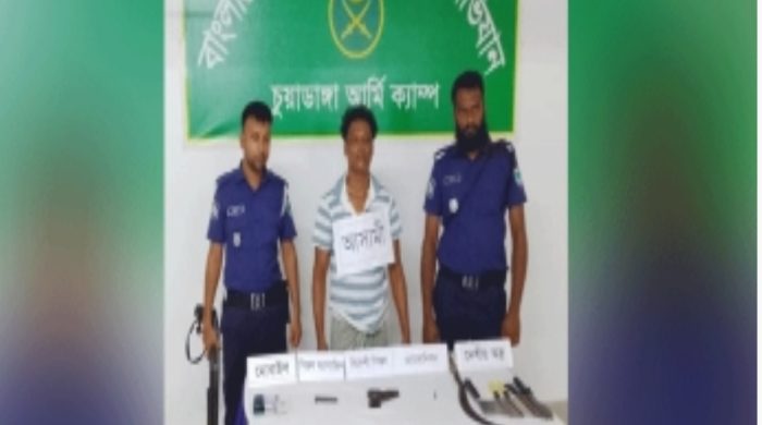 নিজস্ব প্রতিবেদক : চুয়াডাঙ্গায় বিদেশি পিস্তল ও দেশি অস্ত্রসহ পৌর যুবদলের জ্যেষ্ঠ যুগ্ম-আহবায়ক লিমন আলীকে (৪০) আটক করেছে সেনাবাহিনী ও পুলিশ। লিমন আলী চুয়াডাঙ্গা শহরের ঝিনাইদহ বাসস্ট্যান্ড পাড়ার এতিমখানা সড়কের