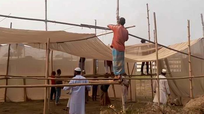 নিজস্ব প্রতিবেদক : গাজীপুরের টঙ্গী তুরাগ তীরে মুসলমানদের দ্বিতীয় বৃহত্তম ধর্মীয় সমাবেশ বিশ্ব ইজতেমার পান্ডেল নির্মাণের কাজ এগিয়ে চলছে পুরোদমে। প্রতিদিন সকাল থেকে সন্ধ্যা পর্যন্ত মাঠ ও প্যান্ডেল প্রস্তুতির কাজে