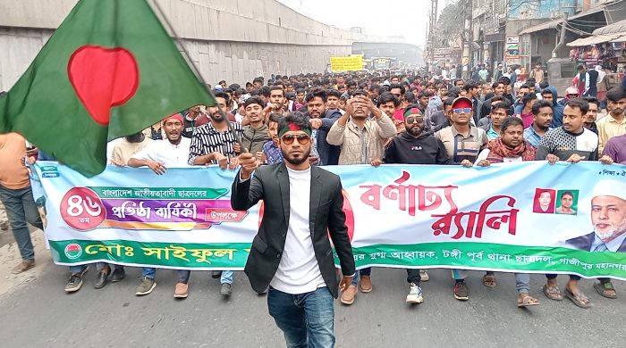 নিজস্ব প্রতিবেদক : গৌরব, ঐতিহ্য, আত্মত্যাগ ও অগ্রযাত্রার আবেগ, যৌবনের প্রথম প্রেম, অনুভূতি ও ভালোবাসার প্রাণপ্রিয় সংগঠন বাংলাদেশ জাতীয়তাবাদী ছাত্রদলের ৪৬ তম প্রতিষ্ঠা বার্ষিকী উপলক্ষে টঙ্গীর চেরাগ আলী এক বর্ণাঢ্য