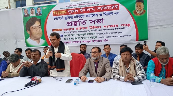 নিজস্ব প্রতিবেদক : জাতীয়তাবাদী দল বিএনপি’র কেন্দ্রীয় কমিটির সাবেক শিল্প বিষয়ক সম্পাদক বীরমুক্তিযোদ্ধা নুরুল ইসলাম সরকারের নিঃশর্ত মুক্তির দাবিতে সমাবেশ ও মিছিল সফল করতে টঙ্গীতে প্রস্তুতি সভা অনুষ্ঠিত হয়েছে। বৃহস্পতিবার