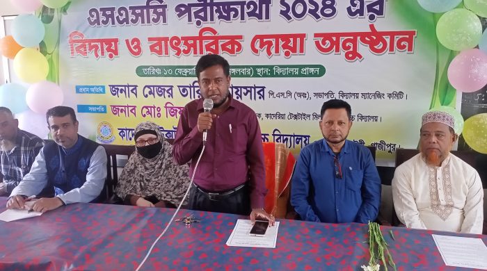 নিজস্ব প্রতিবেদক : টঙ্গীর কাদেরিয়া টেক্সটাইল মিলস্ আদর্শ উচ্চ বিদ্যালয়ের ২০২৪ সালের এসএসসি পরীক্ষার্থীদের সার্বিক মঙ্গল কামনায় দোয়া মাহফিল অনুষ্ঠিত হয়েছে। মঙ্গলবার (১৩ ফেব্রুয়ারী) সকালে বিদ্যালয় মিলনায়তনে এ অনুষ্ঠান অনুষ্ঠিত