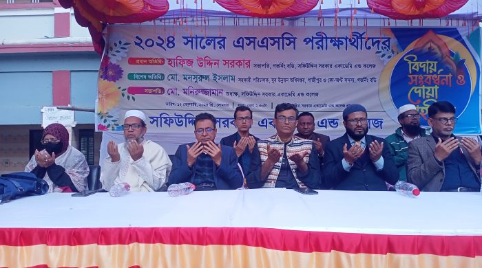 নিজস্ব প্রতিবেদক : টঙ্গীর ঐতিহ্যবাহী স্বনামধন্য শিক্ষা প্রতিষ্টান সফি উদ্দিন সরকার একাডেমি এন্ড কলেজ ২০২৪ সালের এসএসসি পরীক্ষাথীদের মঙ্গল কামনায় দোয়া ও মিলাদ মহফিল বিদায় অনুষ্ঠান অনুষ্টিত হয়েছে। সোমবার (১২ আরো পড়ুন