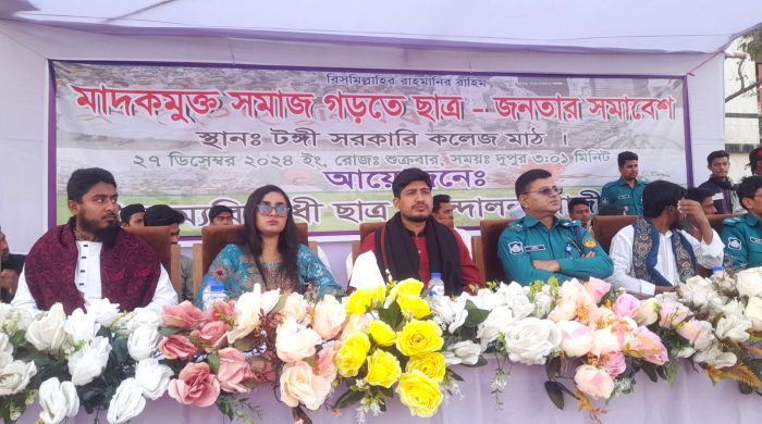 নিজস্ব প্রতিবেদক : বৈষম্য বিরোধী ছাত্র আন্দোলন গাজীপুর জেলা শাখার উদ্যোগে মাদকমুক্ত সমাজ গড়তে টঙ্গীতে ছাত্র-জনতা সমাবেশ ও র্যালী অনুষ্ঠিত হয়েছে। শুক্রবার বিকেলের টঙ্গী সরকারি কলেজ মাঠ প্রাঙ্গনে এই সমাবেশ