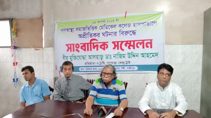 নিজস্ব প্রতিবেদক : গণস্বাস্থ্য সমাজভিত্তিক মেডিকেল কলেজ হাসপাতালে অপ্রীতিকর ঘটনা ও জোর করে পদত্যাগ করানোর প্রতিবাদে টঙ্গীতে নিজ বাড়িতে সাংবাদিক সম্মেলন করেছেন সাভার গণস্বাস্থ্য কেন্দ্রের ট্রাস্টি মুক্তিযোদ্ধা নাজিম উদ্দিন আহমেদ।