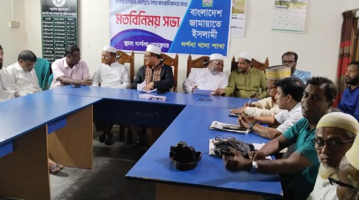 নিজস্ব প্রতিবেদক : চুয়াডাঙ্গার দর্শনা প্রেসক্লাবে সাংবাদিকদের সাথে জেলা জামায়াতে ইসলামীর মতবিনিময় অনুষ্ঠিত হয়েছে। সোমবার সন্ধ্যা সাড়ে ৭ টায় দর্শনা প্রেসক্লাবে আয়োজিত মত বিনিময় সভার সভাপতিত্ব করেন জামায়াতে ইসলামীর দর্শনা