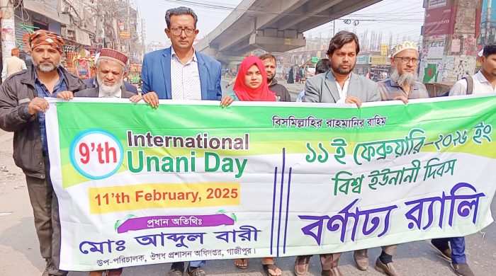 নিজস্ব প্রতিবেদক : বাংলাদেশ ইউনানী ডক্টর’স সোসাইটি গাজীপুর শাখার উদ্যোগে আন্তর্জাতিক ৯ম বিশ্ব ইউনানী দিবস উদযাপন উপলক্ষে বর্ণাঢ্য র্যালী ও আলোচনাসভার আয়োজন করেছে। ১১ই ফেব্রুয়ারী মঙ্গলবার সকালে টঙ্গী চেরাগআলী ঔষধ